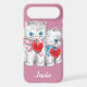 Easy to customise Valentine,s Day phone case, just add your name! Be My Valentine. Vintage illustration Happy Valentine's Day holiday design featuring two adorable grey and white brother and sister kittens with beautiful blue eyes and wearing red hearts. The girl has a pink bow and the boy has a blue bow. 50's retro kitsch.