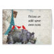 Easily personalise this pretty romantic blue floral garden collage of a funny cute vintage rhino and Eiffel tower Paris with your name, text or monogram initials,. Visit the VINTAGE PRINTS STORE for matching products. CLICK CUSTOMIZE to adjust the text size, position, colour or font.
