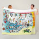 A vintage colourful postcard map of the State of Rhode Island repurposed on a comfy throw blanket.