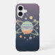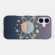 Retro illustration of a planet surrounded by stylized rings in a pastel palette.