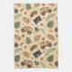 Rustic travel-inspired pattern kitchen towel featuring old-style cars, vintage road signs, leaves, and retro adventure elements in a charming countryside style. Ideal for road trip lovers, vintage enthusiasts, travelers, and anyone who loves nostalgic travel aesthetics.