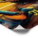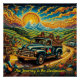 Capture the spirit of the open road with this vibrant 20x20 inch poster featuring a vintage truck cruising through a surreal mountain landscape under a radiant sun. Inspired by the freedom, rhythm, and soul of classic road-trip culture, this artwork blends psychedelic colour, musical energy, and nostalgic Americana into one striking piece.