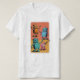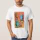 The t-shirt design features a nostalgic and humourous image: vintage robots with boxy shapes, antennae, and funny poses like dancing or playing a guitar. This design evokes a sense of nostalgia for retro sci-fi and robot culture, appealing to fans of retro aesthetics and pop culture.