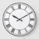 Clock with a plain white background and classic black roman numeral numbers around the dial.