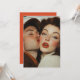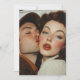 A retro-inspired portrait captures the moment of a tender kiss between a man and a woman. The soft lighting and vintage colour palette evoke a sense of nostalgia, with the woman’s striking makeup and the man’s closed eyes enhancing the romantic mood.