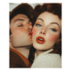 A retro-inspired portrait captures the moment of a tender kiss between a man and a woman. The soft lighting and vintage colour palette evoke a sense of nostalgia, with the woman’s striking makeup and the man’s closed eyes enhancing the romantic mood.