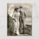 This elegant black-and-white vintage photograph captures a romantic moment between a well-dressed couple beneath a parasol, likely from the early 1900s. Featuring Edwardian-era fashion and timeless charm, it evokes the sweet nostalgia of old-world romance. Perfect for lovers of antique photography, historical decor, and classic romantic imagery