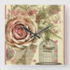 Vintage rose and birdcage wall clock. Cream and pink decorative clock in nostalgic print that includes the Eiffel Tower and a scattering of little pink hearts. Choose any shape.