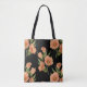 The Swamp Rose is a perennial shrub, up to seven feet tall that is native to the eastern United States. Shown here in a repeating pattern of peach blossoms over a contrasting black background, this tote has feminine appeal.