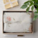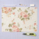 This illustration features a vintage, shabby chic floral pattern with soft pink roses with delicate green leaves. The design is elegant and romantic, evoking a classic, timeless feel.
