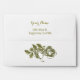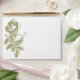 Custom envelopes with faux gold letters and an elegant vintage rose etching in white and faux golds, and a rose pattern on the inside.