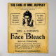 This print is a recreation of an actual ad for Rupperts Face Bleach that appeared in newspapers in the early 1900's. This product claimed it removes permanently pimples, black heads, freckles, eczema, moth patches, sallow ness, and wrinkles not caused by facial expression. It is definitely a conversation starter and measure 8" by 10" and can be enlarged to 16" by 20" which is a standard frame size. It is presented here on poster paper. It is best to upgrade to heavy duty matte paper if framing as a print.