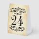 Vintage style wedding table number cards feature elegant black decorative swirls and flourishes. The rustic ivory background is printed with a textured aged parchment paper appearance. Personalise each table number card that you need and add each to your cart individually.