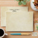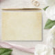 Custom vintage style wedding envelopes feature black return text with scroll design that you can personalise with a background that has an antique parchment paper textured style appearance.