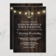 Vintage Rustic Nautical Anchor Lighted Wedding Invitations - features a rustic barn or wooden background with string lights and an elegant gold anchor. The back features the same background with string lights.