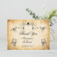 Decorative black swirls and flourishes frame this elegant rustic vintage typography wedding thank you card design. The rustic ivory background is printed with a textured aged parchment paper appearance. Personalise your text on the front cover and the text inside with a custom message.