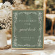 Welcome guests with timeless charm using this elegant vintage Victorian-inspired guest book sign. Designed with a deep sage green background framed by delicate white botanical line art, this piece blends old-world romance with refined modern styling. The ornate floral border and classic typography create a warm, inviting display that beautifully complements vintage, garden, rustic, and traditional wedding themes.