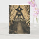 Set against aged parchment in rich sepia tones with dark vignette details, this card evokes the timeless spirit of old-world witchcraft and vintage horror posters. Perfect for sending mysterious Halloween wishes, witches, or dark fantasy aesthetics.