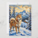 Vintage Samoyed in Alpine Christmas Landscape Holiday Card