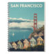 This San Francisco notebook features a vintage-style travel poster design, perfect for anyone who loves the iconic city. The cover showcases famous landmarks like the Golden Gate Bridge and the colourful Victorian houses of Alamo Square, known as the "Painted Ladies." Ideal for journalling, notes, or as a unique gift, this spiral notebook captures the classic charm of San Francisco.