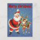 cute vintage santa and reindeer with hanging christmas ornaments and wreath