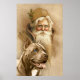 Vintage Santa Claus & Pet Pit Bull Dog Poster