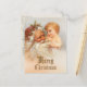 Beautiful old world illustration featuring Saint Nicholas holding a smiling child with golden curls playfully pulling on his flowing white whiskers. Gold Old English style Merry Christmas text (optional).