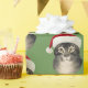 Funny Christmas wrapping paper for cat owners showing a pattern of a vintage painting of a handsome Bengal cat with beautiful yellow eyes and leopard style markings wearing a Santa Claus hat. As he looks so serious I’ve added various slogans in red lettering to the fur on the hat including Bah humbug, Ho ho ho, Merry Xmas, Grumpy Cat and Kiss Me but you can change them to suit with your own greetings or names or delete entirely if you prefer. There’s a festive red border either side. The original hand coloured lithograph print titled The Favourite Cat is by American artist Nathaniel Currier. The paper would be perfect for wrapping gifts for cat lovers and fans of vintage cat art.