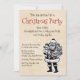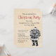 This antique, nostalgic image of Santa Claus carrying toys and boy and girl dolls beckons your guests to attend a holiday Christmas party. The background gives a feel of antique paper with snowflakes falling down in front of it adds to the old-fashioned charm of this invitation.