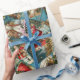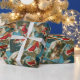 Vintage Santa postcards scattered on a blue background. Green and red versions (with different postcards) also available. Available in four types of premium paper and different five sizes. Width: 30”, Length: Multiple choices from 6 feet - 60 feet. Each roll up to 15’ in length; Lengths greater than 15’ shipped as multiple 15’ rolls. 6' roll wraps 3 shirt-sized boxes. Printed in USA