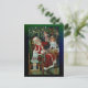 Richly-detailed restored Victorian Christmas greeting card art featuring red-robed Father Christmas giving toys to two little girls. Art is embellished with holly and mistletoe and gold highlights. Custom coordinating dark blue/green artisan background. Back features complementary graphics with editable text fields for your greetings.