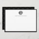 This classic coastal personalised note card features a black border and vintage illustration of a scallop shell. Personalise it with your name in modern sans serif font. A subtle pattern of scallop shells on a black background decorates the reverse.