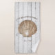 Add an elegant touch to your bath decor with a set of Vintage Scallop Shell Bath Towels. Towel design features a vintage scallop shell and custom text for you to personalise with your family name against a wooden background. Additional home decor items available with this design.