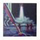 Vintage Science Fiction Aliens Wave to Rocket Tile