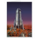 Vintage illustration futuristic Science Fiction travel and transportation rocketship image. Astronauts running to their rocket ship escaping from beetle shaped aliens on a foreign planet trying to get back earth. A classic 50s retro comic book sci fi design of the future.