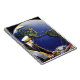 Vintage illustration futuristic travel and transportation science fiction image featuring pilots flying an aircraft, rocket or spaceship in outer space over the planet Earth. The astronauts are travelling over North America. A classic 50s retro comic book sci fi design of the future.