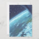 Vintage illustration futuristic outer space and planets Science Fiction image featuring a view of planet earth from the window of a rocket spaceship. You can see clouds swirling over the land and blue ocean. Over the horizon is the night sky with stars shining bright. A classic 50s retro sci fi comic book design.