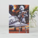 Vintage illustration futuristic Science Fiction military robot image. A hostile alien soldier holding a rifle gun and standing in front of a military aircraft or aeroplane with a star. He is on a desolate planet ready to go to war with smoke, fire and explosions. Time to battle and fight the evil aliens. Classic 50s retro comic book sci fi design.
