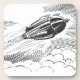 Vintage Science Fiction Spaceship Rocket in Clouds Coaster