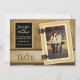 Layered papers in brown hues, with a ribbon of chalkboard and old parchment, featuring a vintage portrait folio to frame your engagement photo. Customise with your own details.