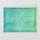 The vintage, playful feel of this RSVP is sure to set your wedding apart! The blue and green colours are reminiscent of the ocean and would work well with a colourful, l themed or beach themed wedding.