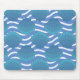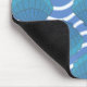A blue seashell and waves pattern drawing. Mosaic style design in shades of blue.