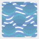 A blue seashell and waves pattern drawing. Mosaic style design in shades of blue.
