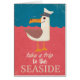 cute cartoon seaside vacation poster print. Seagull travel poster.