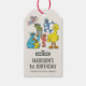 This charming gift tag is perfect for adding a special touch to party favours at a little one's first birthday celebration with a classic Sesame Street theme! The design features a lively group of beloved vintage characters, including Big Bird, Zoe, Grover, Elmo, Oscar the Grouch, and Cookie Monster, all in their iconic sketch art style. The tag includes the "123 SESAME STREET" sign and a prominent customisable "1st BIRTHDAY" message, which can be personalised with a child's name, followed by "THANK YOU FOR COMING!!". It's a delightful and nostalgic way to show appreciation to guests.
