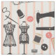 Such a cute sewing themed design with a vintage sewing machine, cotton bobbins, buttons, dress mannequins , pins and needles, a lovely pattern for crafty folk and anyone into sewing.