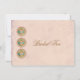 Chic bridal tea party shower invitation done in an antique looking peach coloured graphic background. Graphics of a white semi transparent overlay has white antique looking edges, on both side, and a pretty little round vintage painting of a tea pot decorates the top of the card. Personalise the black and golden brown text for your bridal tea party event.