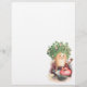 Antique postcard illustration from the 1900's, with a smiling face, rosy cheeks, humanised potted plant of four leaf clover shamrocks, surrounded by a red puffy heart and key, and a pretty golden yellow butterfly. Much good luck!
