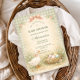 A charming storybook-style baby shower design featuring a sweet watercolor goose standing beside a nest filled with pastel eggs. Delicate spring flowers and soft greenery create a gentle countryside scene, while a blush bow and sage gingham background add a cozy cottagecore touch. The vintage illustration style and soft pastel palette give this design a whimsical nursery feel, perfect for a playful and heartwarming baby celebration.
