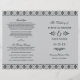 Elegant and glamourous wedding ceremony programs inspired by vintage art deco style and the roaring twenties. Silver / grey background colour with black design. Personalise the custom text for your bridal party, ceremony information, and thank you message. Note: these text weight paper programs arrive flat and require folding to assemble.
